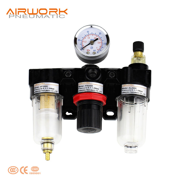 AC Series FRL Air Combination is a component that works by the force produced by the pressure or expansion of the air, which converts the elastic energy of compressed air into kinetic energy. Such as cylinder, pneumatic motor, steam engine, etc. The air source processor is used in automation production of metallurgical machinery, construction machinery, transportation equipment, household appliances, light industry, machine tools, medical and other industries.
