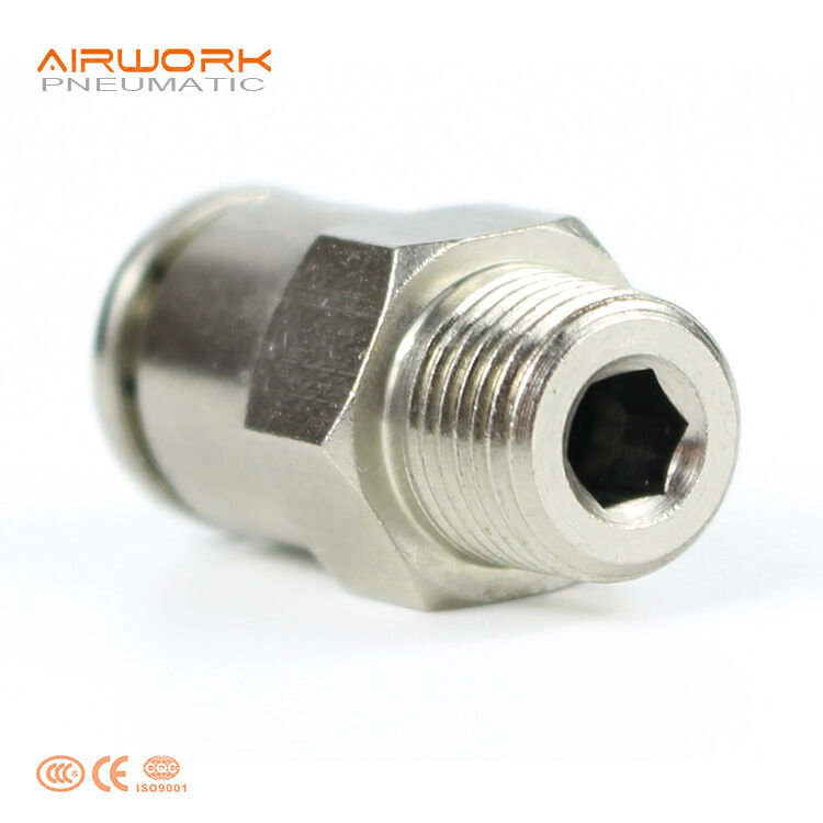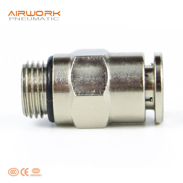 Brass Male Straight Push-in Fittings (One-Touch fittings) with nickel plates are used widely in pneumatic tubing system. Pneumatic quick connect push in air fittings are widely accepted because compression fitting consumes certain manpower and time in the product assembly, the maintenance, increases the labor cost in the product cost expenditure.